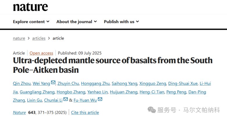Nature封面文章2025年7月9日,中国科学院地质与地球物理研究所、中国科学院国家天文台与中国地质大学等科研团队,利用嫦娥六号采回的月球背面样品取得的四项研究成果以封面文章形式发表于国际学术期刊《自然》杂志。四项研究分别揭示了月背岩浆活动、月球古磁场、月幔水含量及地球化学特征,首次为人类揭开了月